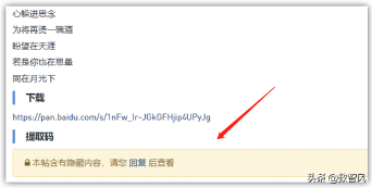②、回复才能显示:有一些分享者分享时故意隐藏了提取码,只有回复了它的下载帖,才可以看到提取码。那我们就必须按照它的要求回复帖子。