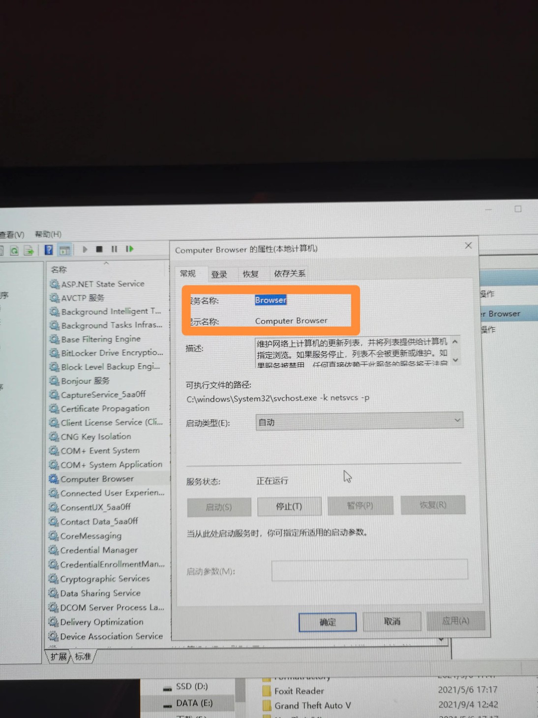 刚配的电脑,用了个steam串流后,电脑就在重启后加载变慢,鼠标右键刷新桌面假死,倒腾了一天,终于发现是因为computer browser这个服务停用的原因。启用服务,问题解决,桌面右键刷刷刷又回来了。